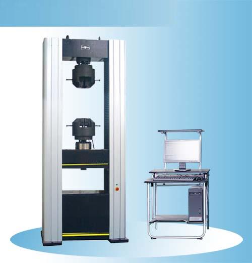 DP-500E/600E微机控制电子万能试验机采用双空间结构、铝合金外罩,上空间拉伸、下空间压缩及弯曲。电子万能试验机主机部分由导向立柱、上横梁、中横梁、工作台组成落地式框架,传动部分安装在工作台下部,负荷传感器安装在中横梁上面,外罩包住导向立柱和滚珠丝杠副。交流伺服电机通过精密减速系统带动滚珠丝杠副旋转,滚珠丝杠副驱动中横梁,带动拉伸辅具(或压缩、弯曲等辅具)上下移动,实现对试样的加荷与卸载。该结构保证机架具有足够的刚度,同时实现高效、平稳传动。主机关键件在加工中心上加工,保证了整机的几何精度,采用E5级滚珠丝杠副提高了整机的传动精度。